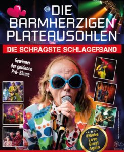 Liebe Schlagerfreunde und Tänzerinnen, macht euch bereit für eine Achterbahnfahrt durch die Zeit! Die barmherzigen Plateausohlen sind keine gewöhnliche Band – nein, sie sind der Schlagerwahnsinn in Person! Mit ihrer „Einmal um die ganze Welt“-Tour haben sie Deutschland, die Schweiz, Österreich und sogar die sonnigen Kanarischen Inseln erobert. Auf dem Schlagermove in Hamburg, nach einem Konzert vor 20.000 tosenden Fans, wurde die Band mit der „Goldenen Prilblume“ durch Publikumsentscheid als die beste und schrägste Schlagerband Deutschlands ausgezeichnet. Zurecht! Auf ihren zauberhaft verrückten Reisen durch die Schlagerwelten haben die barmherzigen Plateausohlen nicht nur die Schlagerlegenden Jürgen Drews, Michael Holm, Bata Illic, Cindy & Bert, Chris Roberts und Tony Marshall begleitet, sondern auch mit Künstlern wie Otto, Laith Al Deen und Nena die Bühnen unsicher gemacht. Ja, meine Damen und Herren, sie haben die Großen begleitet und dabei ihre schräge verrückte charmante und sympathische Schlagershow auf die Bretter gezaubert!