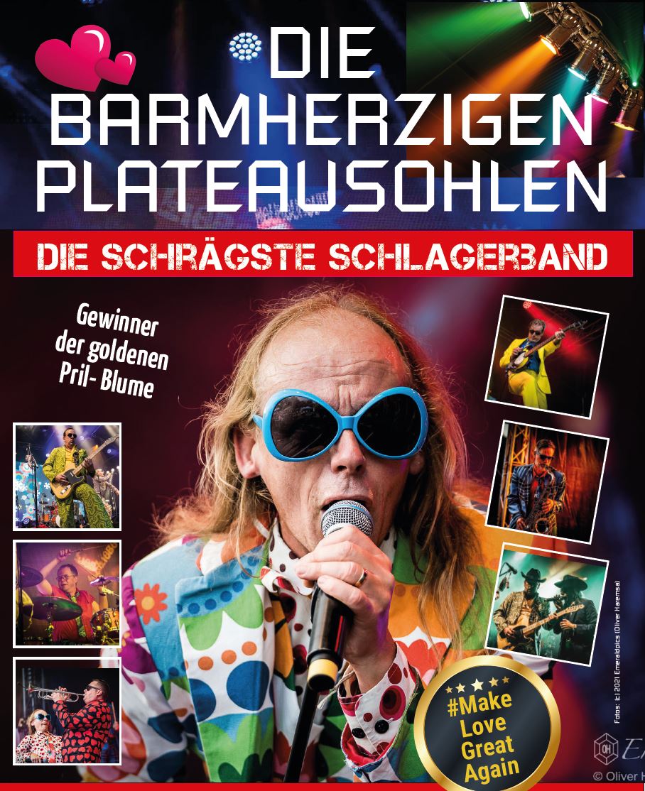Mehr als 27 Jahre auf der Bühne, mehr Liebe als ein Herz vertragen kann, und mit bunten Outfits, die direkt aus einer Zeitreise durch vergangene Modeepochen zu kommen scheinen. Zieht eure Plateauschuhe an und lasst euch von der schrägsten Schlagerband Deutschlands in eine Welt entführen, in der der Wahnsinn regiert und die Musik eure Herzen im Sturm erobert! Die barmherzigen Plateausohlen – Schlager at its verrücktest! 🎤💃🕺